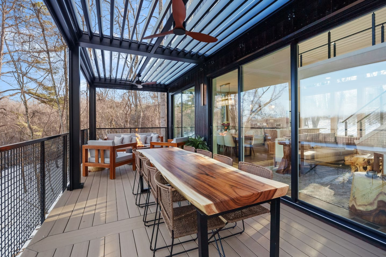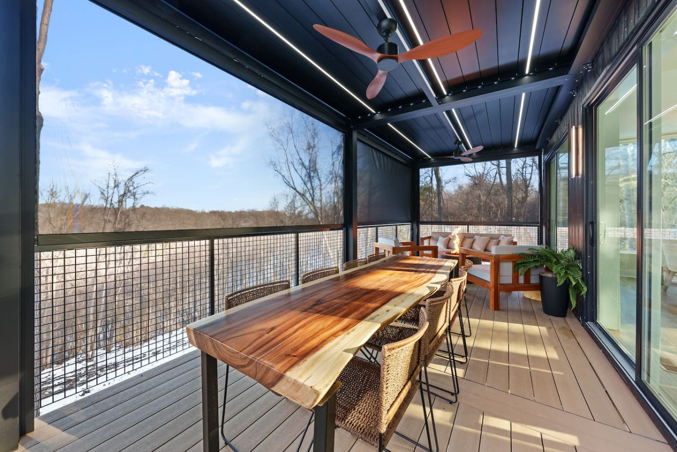 A quick heads-up for winter stays: a few pergola features take a seasonal break. The fire ring, lights, fans, and patio furniture remain fully available for your enjoyment. All retractable screens will be closed for the season except the one that opens to the outdoor grill.