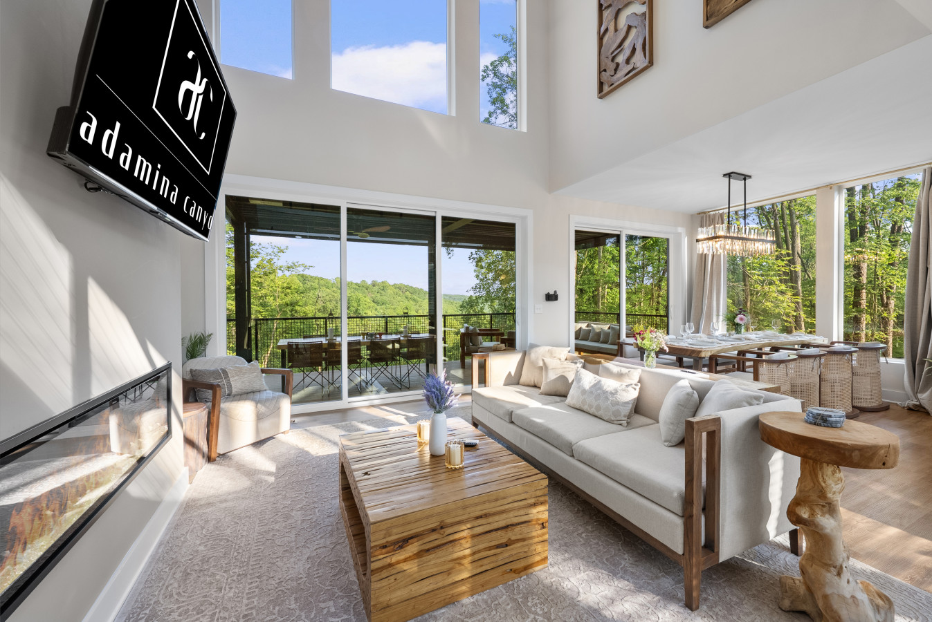 This luxurious brand new villa is nestled in the Heart of Hocking Hills overlooking Adamina Canyon. Experience a Colorado mountain villa right here in Ohio, while enjoying 100 acres of private serenity, vistas & picturesque landscape. With exceptional amenities such as 2 overlook decks, a 7-person hot tub, outdoor dining with motorized bay screens & fans, a propane fire bowl, along with plenty of indoor living space! This Villa offers 4 free parking spots with extra shared parking if needed!